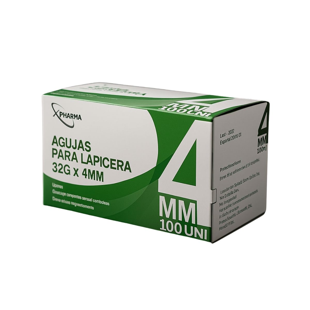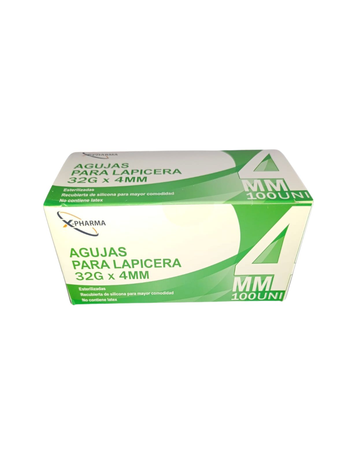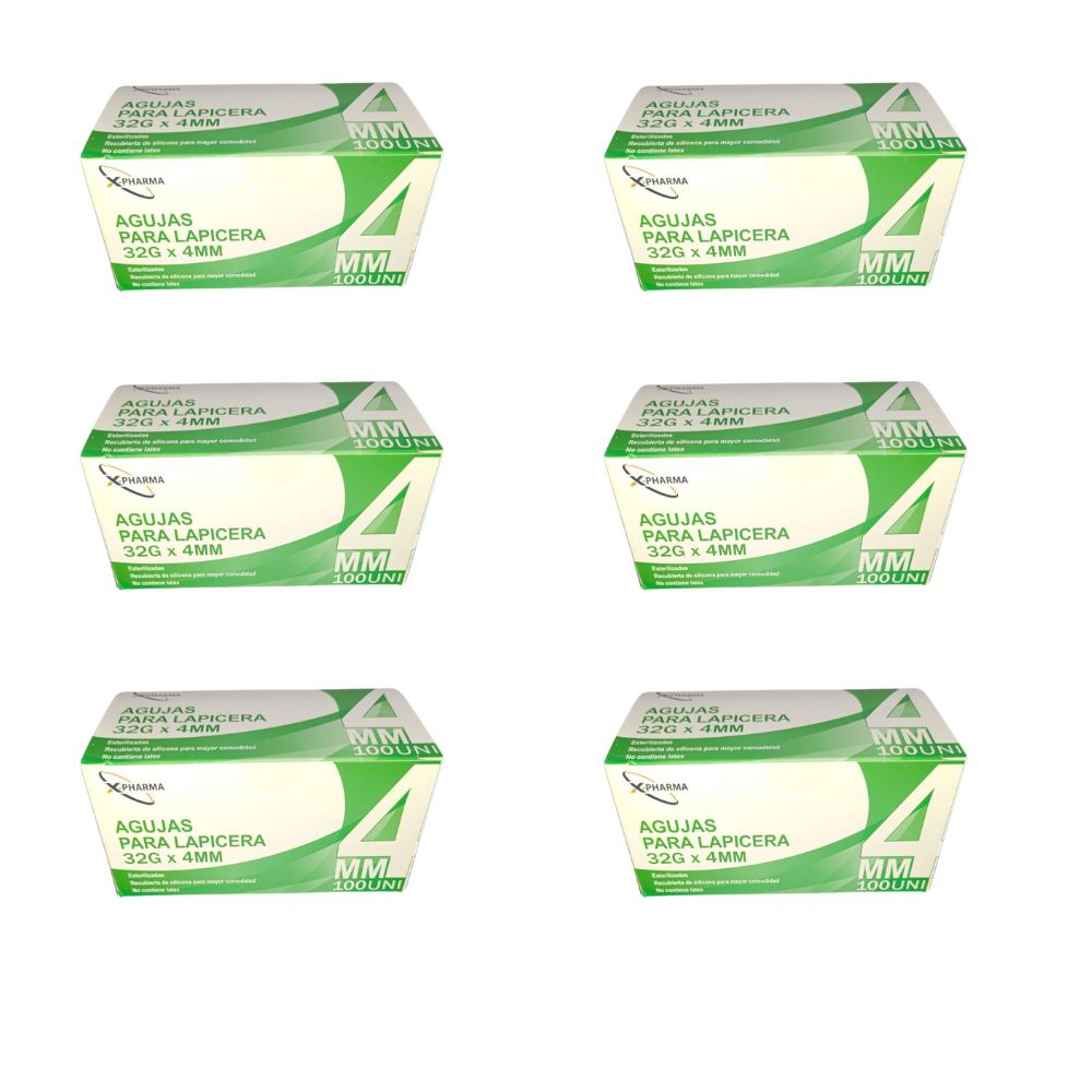 Agujas hipodérmicas para lapicera X Pharma 32 G x 4 mm x6 cajas 600 agujas