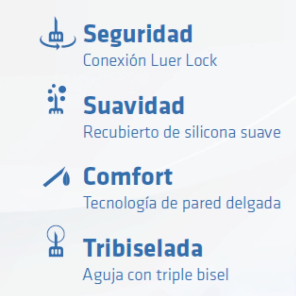 Recubiertas de silicona para mayor comodidad en la inyección.