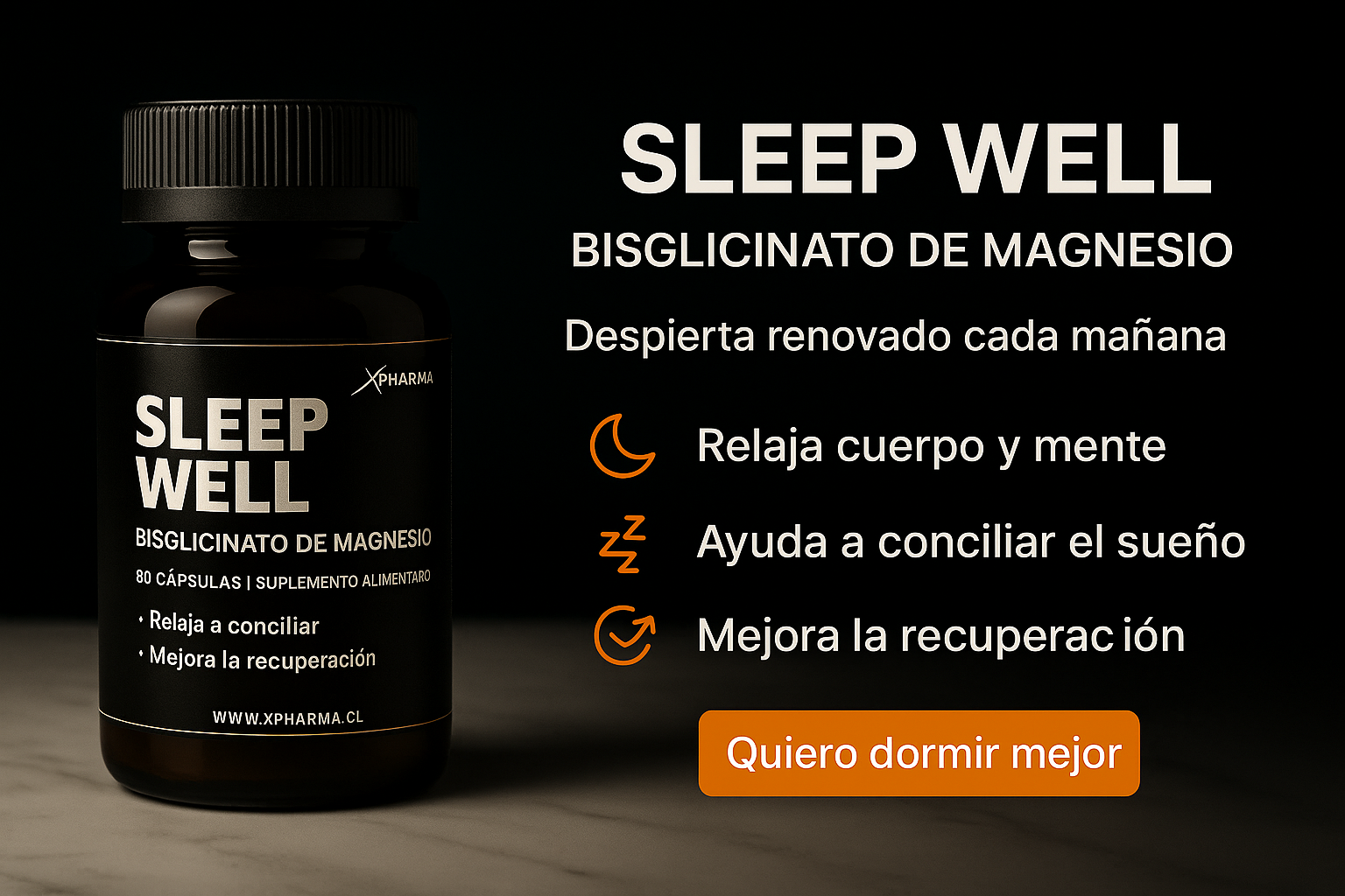 Sleep Well es un suplemento alimenticio de bisglicinato de magnesio de alta biodisponibilidad formulado por XPharma. Gracias a su forma quelada, el magnesio se absorbe de manera más eficiente, potenciando sus efectos relajantes sin generar molestias gastrointestinales. Viene en frascos de 60 cápsulas, libres de calorías y sin preservantes, para que incluyas un aliado natural en tu rutina nocturna.