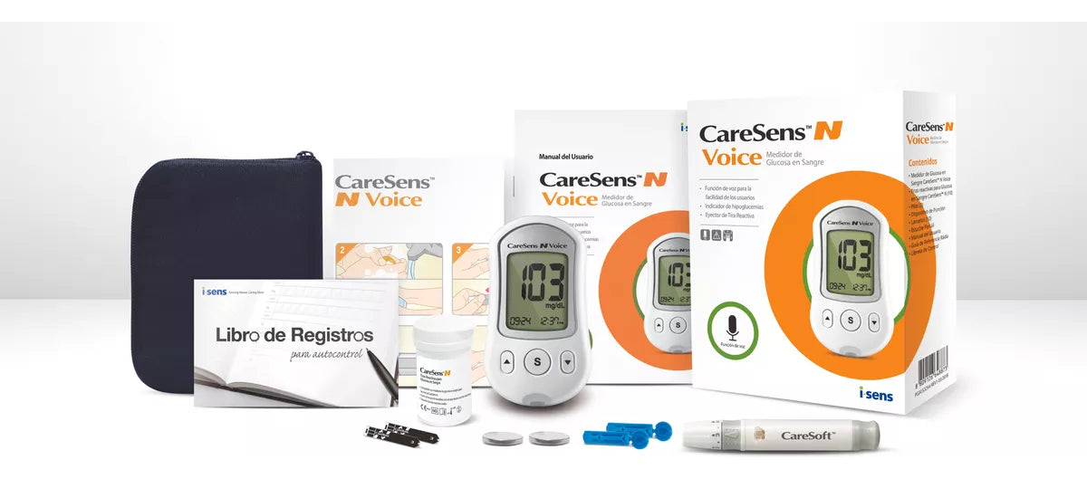 Glucometro Caresens N Con Voz + 100 Tiras + 100 Lancetas
